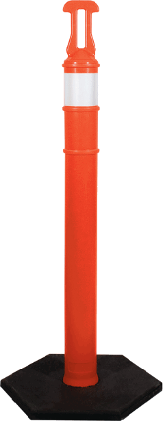 Tubo indicador naranja con 1 banda reflejante y base de hule hexagonal